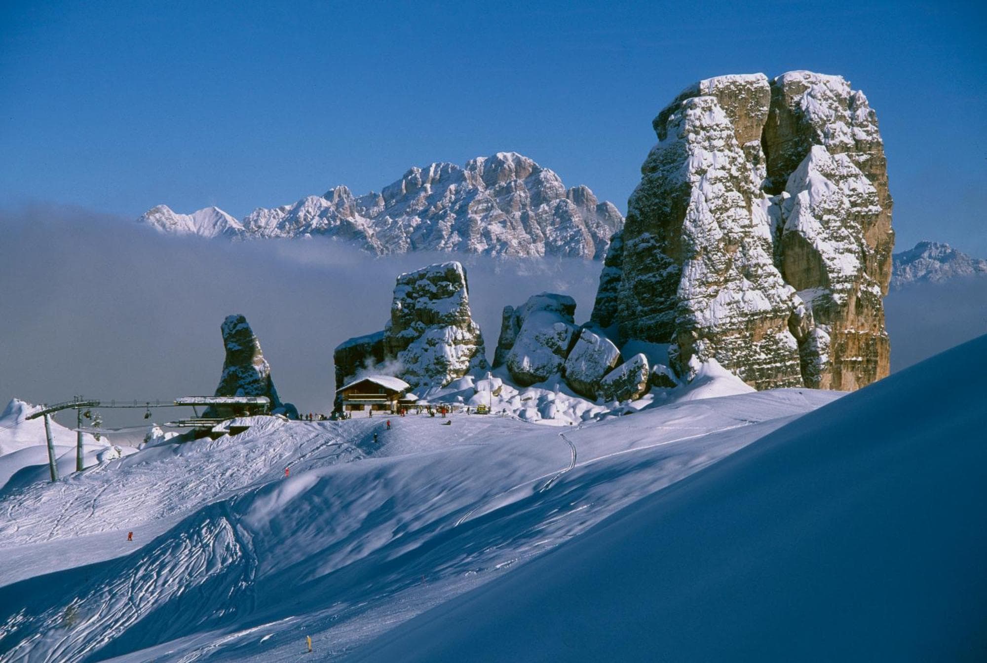 Cortina d'Ampezzo is a town and comune in the heart of the southern Alps in the Veneto region of Northern Italy. Situated on the Boite river, in an alpine valley, it is a popular winter sport resort known for its skiing trails, scenery, accommodation, shops and après-ski scene, and for its jet set and aristocratic European crowd. MAIN TOURIST ATTRACTIONS • Rinaldo Zardini Palaeontology Museum • Regole of Ampezzo Ethnographic Museum • Mario Rimoldi Modern Art Museum • The Basilica Minore dei Santi Filippo e Giacomo • The Cappella della Beata Vergine di Lourdes • The Castello de Zanna is a small fortress, situated in the frazione of Majon. It consists of low white outer walls and two white corner towers, with a small chapel dedicated to the Holy Trinity. • Forte Tre Sassi (or Forte Tra i Sassi) is a fortress constructed in 1897 during the Austro-Hungarian period on the Passo Valparola. • Castello di Botestagno (also known as Podestagno) was a medieval fort perched on a rock in the valley of the river Boite, a little further north of Cortina, in the town of Prà del Caštel.