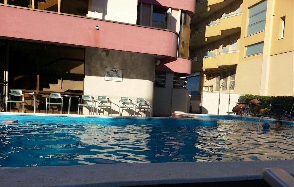 Nelle vicinanze di: Riviera di Rimini, Avrai a disposizione molti servizi ricreativi, tra cui una piscina stagionale all'aperto, nonche una terrazza e un giardino da dove potrai ammirare il paesaggio. Questo hotel offre, inoltre, Wi-Fi gratuito e servizi di concierge., Potrai usufruire di quotidiani gratuiti nella hall, una reception aperta 24 ore su 24 e deposito bagagli. Gli ospiti avranno a disposizione una navetta da e per l'aeroporto a pagamento e il un parcheggio gratuito e disponibile in loco., Le distanze sono visualizzate con un'approssimazione di 0,1 chilometri. Riviera di Rimini: 0,1 km Fiabilandia: 0,9 km Viale Regina Elena: 1,8 km Go-kart Pista Miramare: 2,3 km Centro Congressi SGR: 2,3 km Le Befane Centro Commerciale: 2,8 km Multiplex Le Befane: 2,9 km Parco Acquatico Beach Village: 3 km Piazza Marvelli: 3,5 km Viale Vespucci: 3,6 km Tribunale di Rimini: 4 km 105 Stadium: 4 km Viale Dante: 4,4 km Fondazione Federico Fellini: 4,5 km Anfiteatro Romano: 4,6 km L'aeroporto internazionale piu vicino e Rimini (RMI-Federico Fellini Intl.): 2,7 km